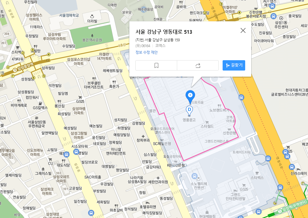 주소 : 서울 강남구 영동대로 513 / 코엑스